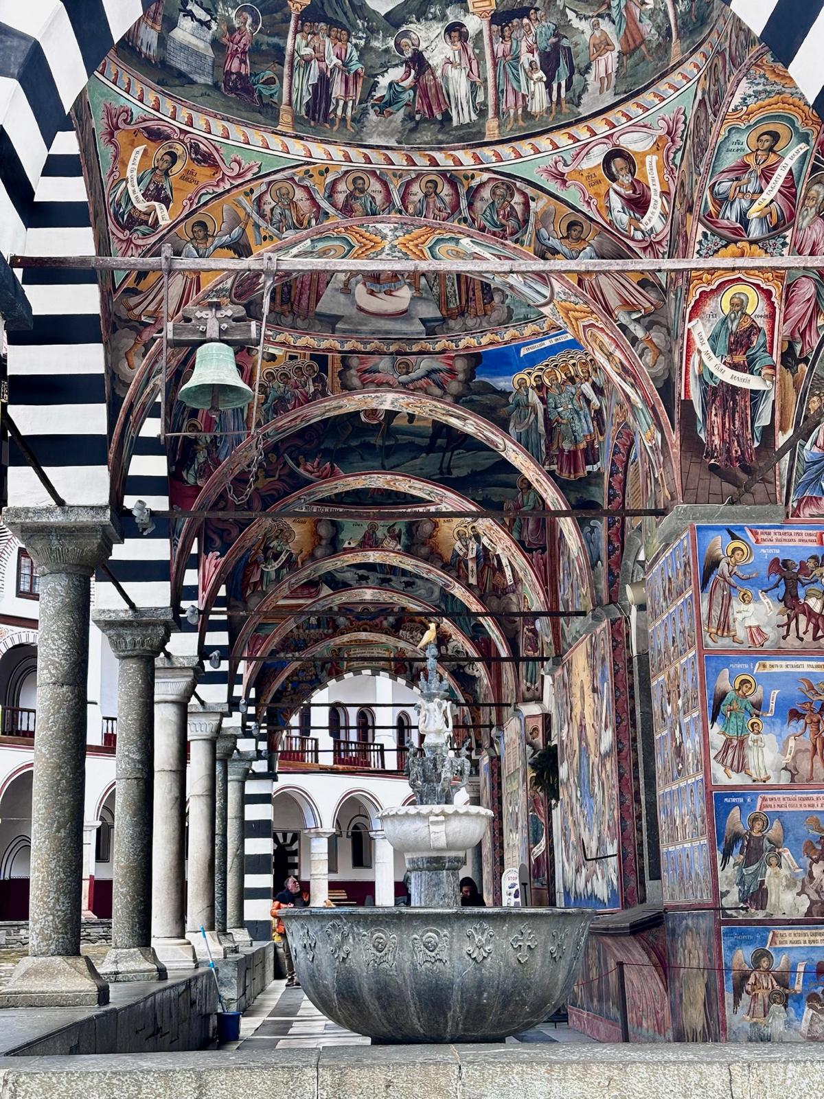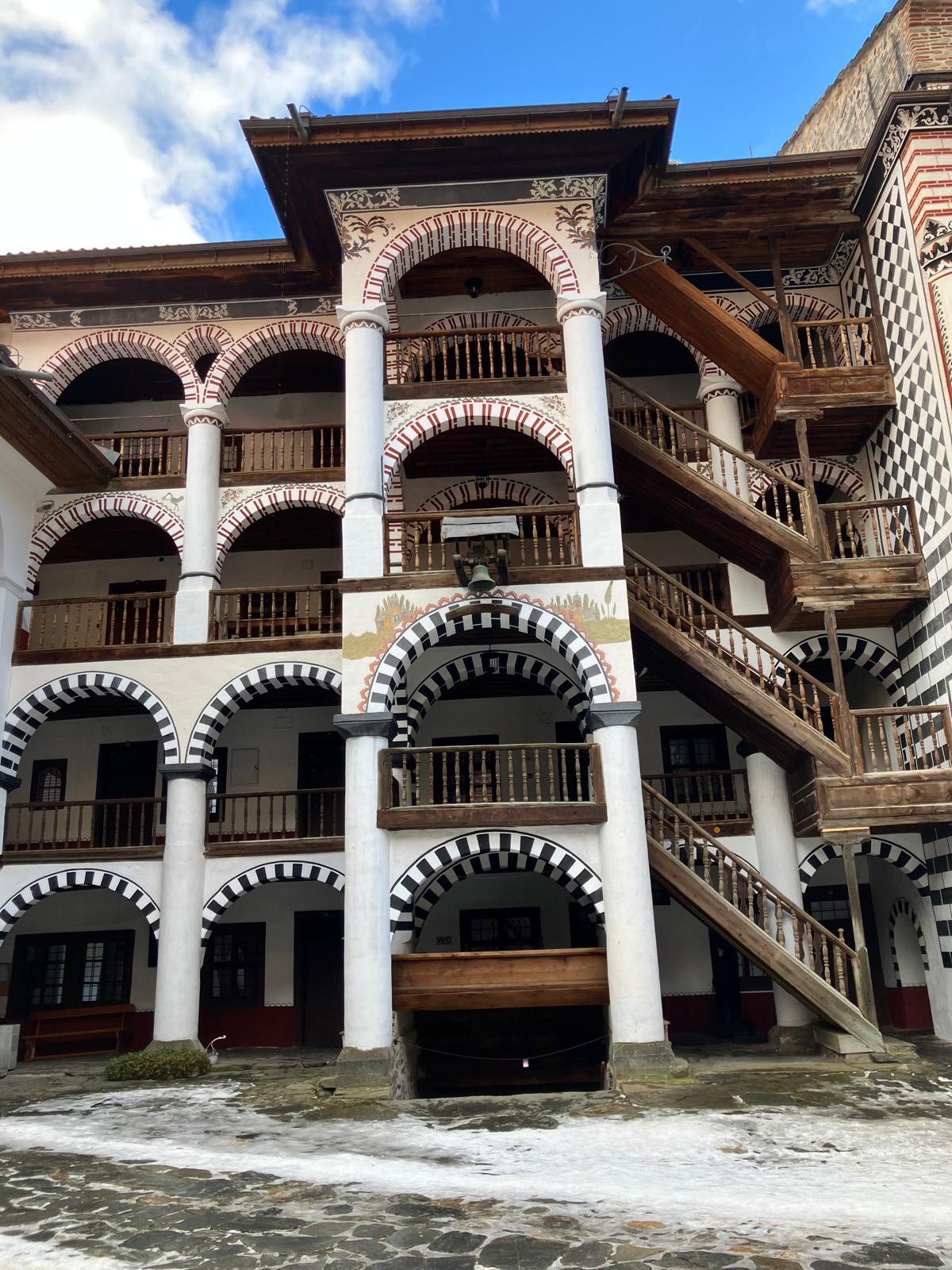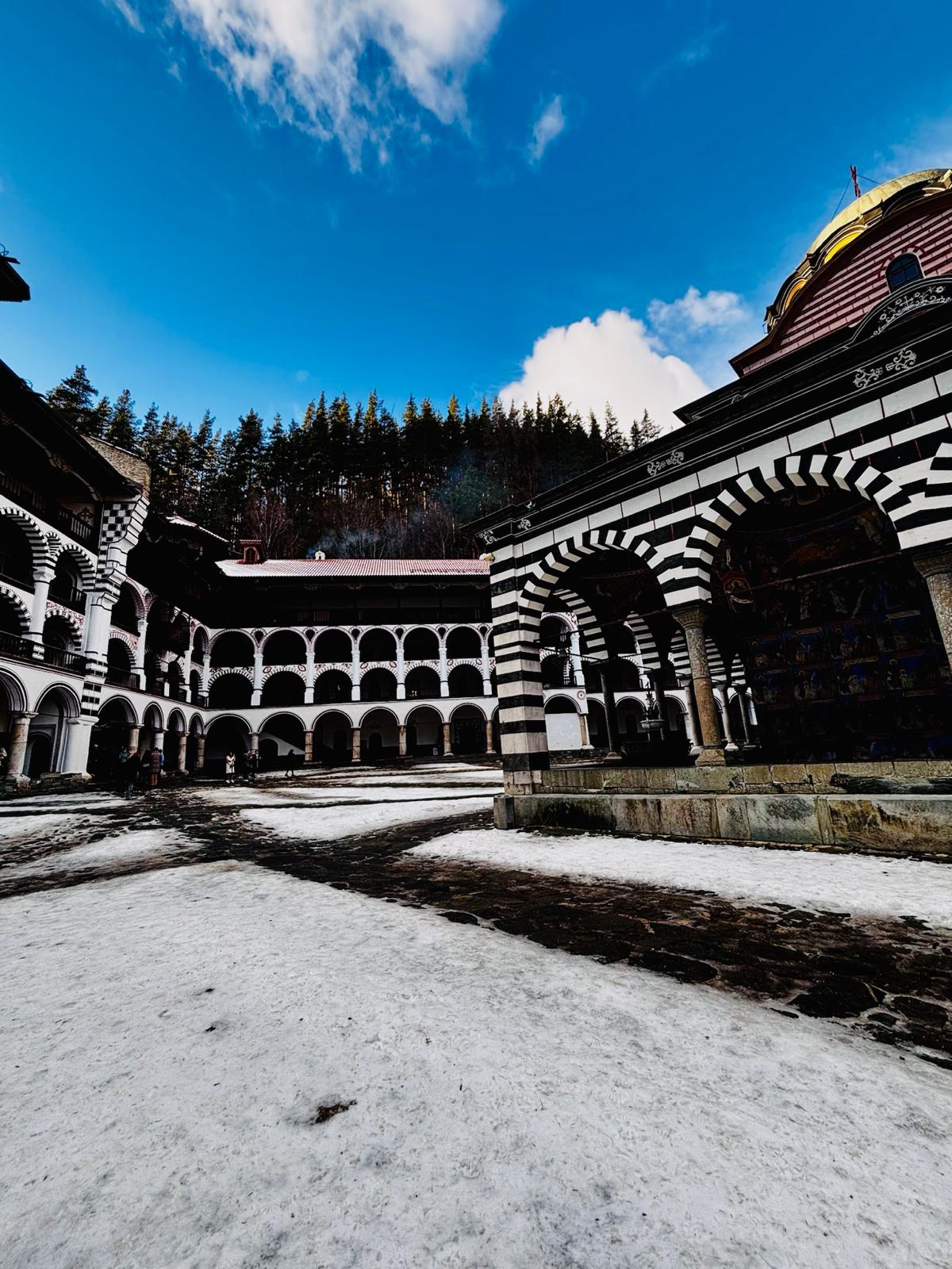 The Rila Mountains are home to the stunning Rila Monastery, which we visited on our way to Blagoevgrad—the town where we stayed for the entire trip. The journey from Sofia Airport took about two hours and only 40 mins from Blagoevgrad. The drive through the mountains was beautiful, with snow-covered trees lining the road. Entry to the Rila Monastery complex and church is free, while parking outside the monastery costs £3